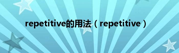 关于repetitive的用法,repetitive这个很多人还不知道,今天菲菲来为大家解答以上的问题,现在让我们一起来看看吧!
