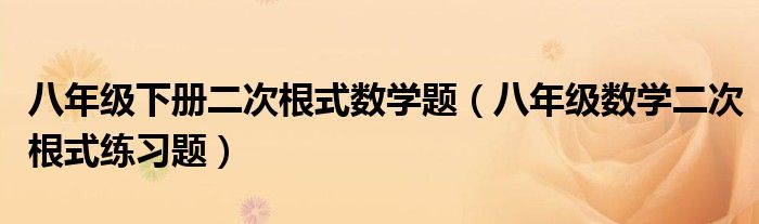 关于八年级下册二次根式数学题,八年级数学二次根式练习题这个很多人还不知道,今天菲菲来为大家解答以上的问题,现在让我们一起来看看吧!