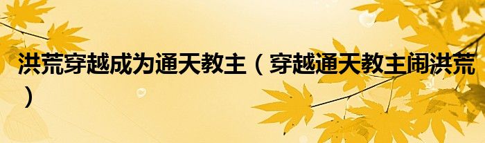 关于洪荒穿越成为通天教主,穿越通天教主闹洪荒这个很多人还不知道,今天菲菲来为大家解答以上的问题,现在让我们一起来看看吧!