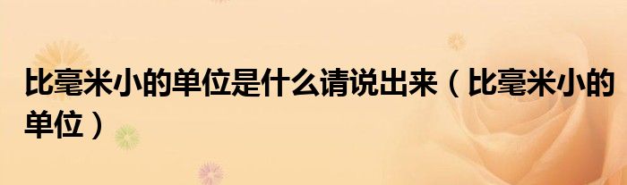 大家好,小晋来为大家解答以下问题,关于比毫米小的单位是什么请说出来,比毫米小的单位很多人还不知道,今天让我们一起来看看吧!