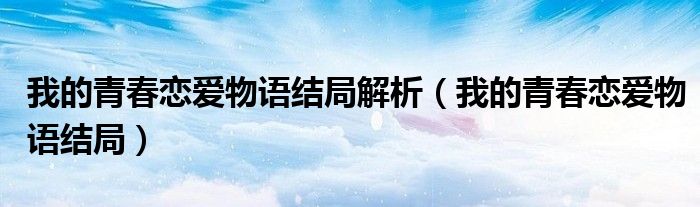 关于我的青春恋爱物语结局解析,我的青春恋爱物语结局这个很多人还不知道,今天菲菲来为大家解答以上的问题,现在让我们一起来看看吧!