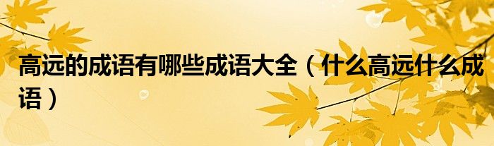 大家好,小晋来为大家解答以下问题,关于高远的成语有哪些成语大全,什么高远什么成语很多人还不知道,今天让我们一起来看看吧!