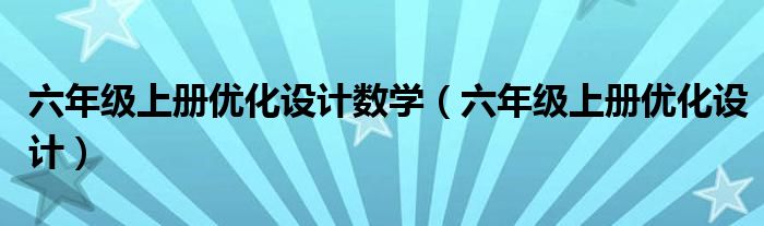 关于六年级上册优化设计数学,六年级上册优化设计这个很多人还不知道,今天菲菲来为大家解答以上的问题,现在让我们一起来看看吧!