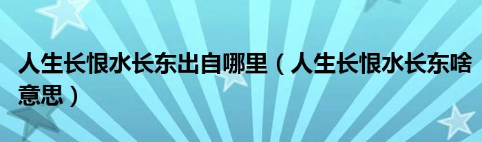 大家好,小晋来为大家解答以下问题,关于人生长恨水长东出自哪里,人生长恨水长东啥意思很多人还不知道,今天让我们一起来看看吧!