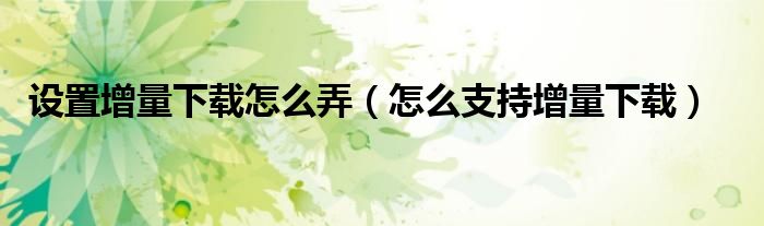 设置增量下载怎么弄(怎么支持增量下载)
