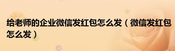 大家好,小晋来为大家解答以下问题,关于给老师的企业微信发红包怎么发,微信发红包怎么发很多人还不知道,今天让我们一起来看看吧!