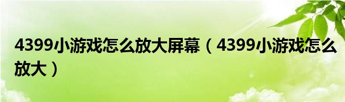 关于4399小游戏怎么放大屏幕,4399小游戏怎么放大这个很多人还不知道,今天菲菲来为大家解答以上的问题,现在让我们一起来看看吧!