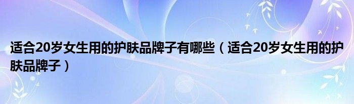 关于适合20岁女生用的护肤品牌子有哪些,适合20岁女生用的护肤品牌子这个很多人还不知道,今天菲菲来为大家解答以上的问题,现在让我们一起来看看吧!