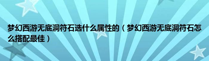 关于梦幻西游无底洞符石选什么属性的,梦幻西游无底洞符石怎么搭配最佳这个很多人还不知道,今天菲菲来为大家解答以上的问题,现在让我们一起来看看吧!