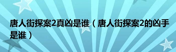 唐人街探案2真凶是谁(唐人街探案2的凶手是谁)
