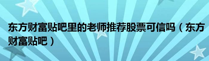 关于东方财富贴吧里的老师推荐股票可信吗,东方财富贴吧这个很多人还不知道,今天菲菲来为大家解答以上的问题,现在让我们一起来看看吧!