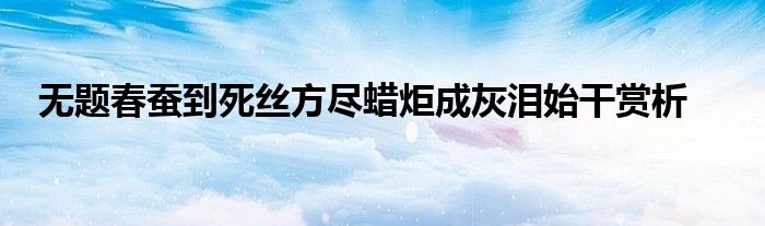 关于无题春蚕到死丝方尽蜡炬成灰泪始干赏析这个很多人还不知道,今天菲菲来为大家解答以上的问题,现在让我们一起来看看吧!