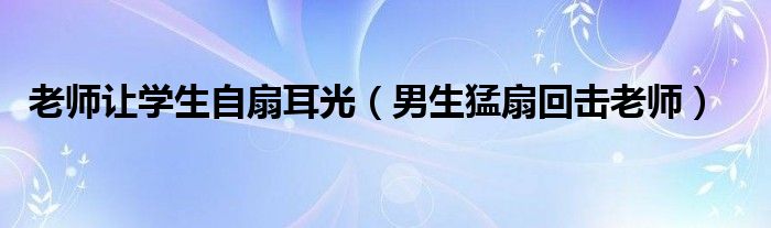 大家好,来宝来为大家解答以下问题,老师让学生自扇耳光,男生猛扇回击老师很多人还不知道,今天让我们一起来看看吧!