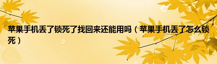 关于苹果手机丢了锁死了找回来还能用吗,苹果手机丢了怎么锁死这个很多人还不知道,今天菲菲来为大家解答以上的问题,现在让我们一起来看看吧!