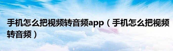 手机怎么把视频转音频app(手机怎么把视频转音频)