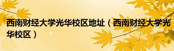 关于西南财经大学光华校区地址,西南财经大学光华校区这个很多人还不知道,今天菲菲来为大家解答以上的问题,现在让我们一起来看看吧!