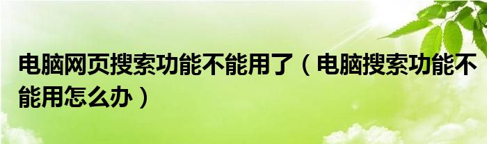 关于电脑网页搜索功能不能用了,电脑搜索功能不能用怎么办这个很多人还不知道,今天菲菲来为大家解答以上的问题,现在让我们一起来看看吧!