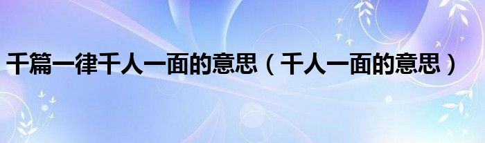 关于千篇一律千人一面的意思,千人一面的意思这个很多人还不知道,今天菲菲来为大家解答以上的问题,现在让我们一起来看看吧!