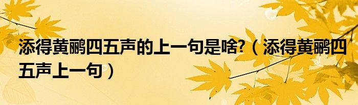 大家好,小晋来为大家解答以下问题,关于添得黄鹂四五声的上一句是啥?,添得黄鹂四五声上一句很多人还不知道,今天让我们一起来看看吧!