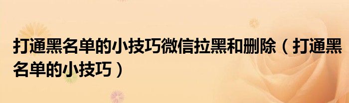 大家好,小晋来为大家解答以下问题,关于打通黑名单的小技巧微信拉黑和删除,打通黑名单的小技巧很多人还不知道,今天让我们一起来看看吧!