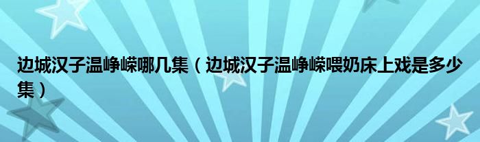 关于边城汉子温峥嵘哪几集,边城汉子温峥嵘喂奶床上戏是多少集这个很多人还不知道,今天菲菲来为大家解答以上的问题,现在让我们一起来看看吧!