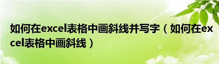大家好,来宝来为大家解答以下问题,如何在excel表格中画斜线并写字,如何在excel表格中画斜线很多人还不知道,今天让我们一起来看看吧!