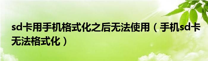 大家好,来宝来为大家解答以下问题,sd卡用手机格式化之后无法使用,手机sd卡无法格式化很多人还不知道,今天让我们一起来看看吧!