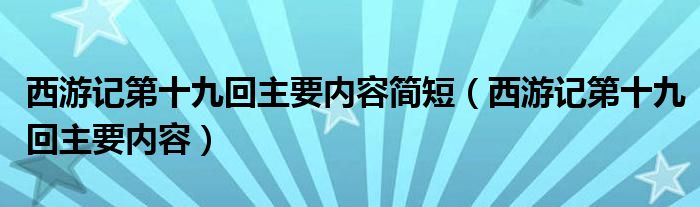 关于西游记第十九回主要内容简短,西游记第十九回主要内容这个很多人还不知道,今天菲菲来为大家解答以上的问题,现在让我们一起来看看吧!