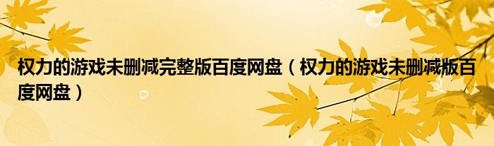 关于权力的游戏未删减完整版百度网盘,权力的游戏未删减版百度网盘这个很多人还不知道,今天菲菲来为大家解答以上的问题,现在让我们一起来看看吧!