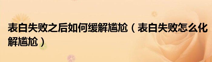 大家好,小晋来为大家解答以下问题,关于表白失败之后如何缓解尴尬,表白失败怎么化解尴尬很多人还不知道,今天让我们一起来看看吧!