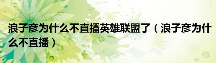 关于浪子彦为什么不直播英雄联盟了,浪子彦为什么不直播这个很多人还不知道,今天菲菲来为大家解答以上的问题,现在让我们一起来看看吧!