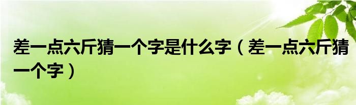 大家好,小晋来为大家解答以下问题,关于差一点六斤猜一个字是什么字,差一点六斤猜一个字很多人还不知道,今天让我们一起来看看吧!