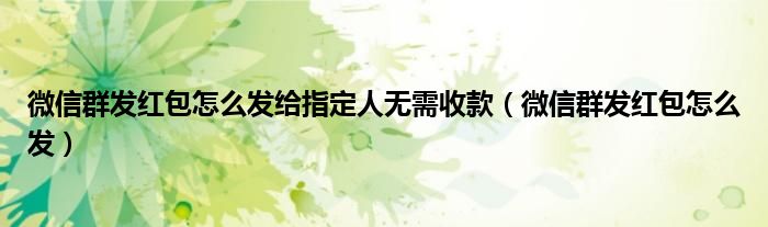 大家好,小晋来为大家解答以下问题,关于微信群发红包怎么发给指定人无需收款,微信群发红包怎么发很多人还不知道,今天让我们一起来看看吧!