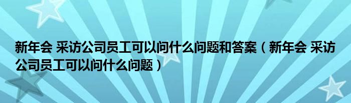 关于新年会 采访公司员工可以问什么问题和答案,新年会 采访公司员工可以问什么问题这个很多人还不知道,今天菲菲来为大家解答以上的问题,现在让我们一起来看看吧!