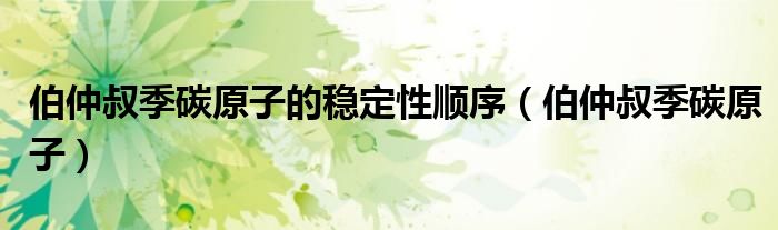 关于伯仲叔季碳原子的稳定性顺序,伯仲叔季碳原子这个很多人还不知道,今天菲菲来为大家解答以上的问题,现在让我们一起来看看吧!