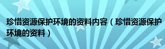 关于珍惜资源保护环境的资料内容,珍惜资源保护环境的资料这个很多人还不知道,今天菲菲来为大家解答以上的问题,现在让我们一起来看看吧!