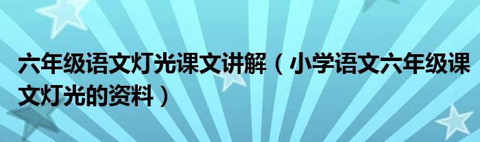 关于六年级语文灯光课文讲解,小学语文六年级课文灯光的资料这个很多人还不知道,今天菲菲来为大家解答以上的问题,现在让我们一起来看看吧!