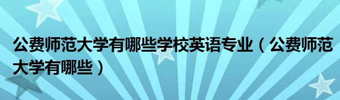 关于公费师范大学有哪些学校英语专业,公费师范大学有哪些这个很多人还不知道,今天菲菲来为大家解答以上的问题,现在让我们一起来看看吧!