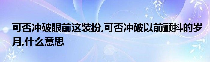 关于可否冲破眼前这装扮,可否冲破以前颤抖的岁月,什么意思这个很多人还不知道,今天菲菲来为大家解答以上的问题,现在让我们一起来看看吧!