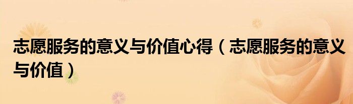 关于志愿服务的意义与价值心得,志愿服务的意义与价值这个很多人还不知道,今天菲菲来为大家解答以上的问题,现在让我们一起来看看吧!