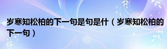 大家好,小晋来为大家解答以下问题,关于岁寒知松柏的下一句是句是什,岁寒知松柏的下一句很多人还不知道,今天让我们一起来看看吧!