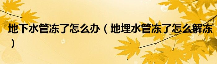 大家好,小晋来为大家解答以下问题,关于地下水管冻了怎么办,地埋水管冻了怎么解冻很多人还不知道,今天让我们一起来看看吧!