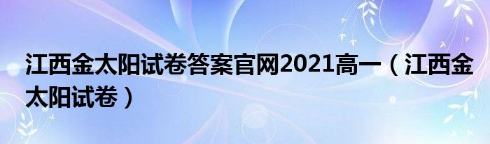 江西金太阳试卷答案官网2021高一(江西金太阳试卷)