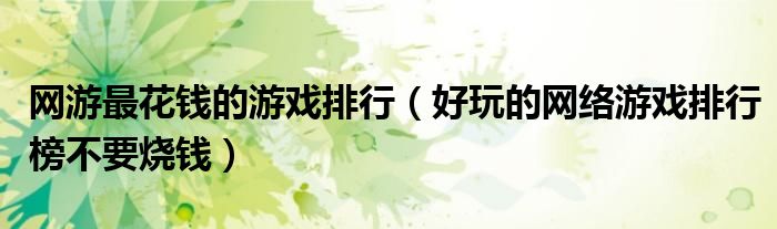 网游最花钱的游戏排行(好玩的网络游戏排行榜不要烧钱)