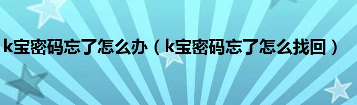 关于k宝密码忘了怎么办,k宝密码忘了怎么找回这个很多人还不知道,今天菲菲来为大家解答以上的问题,现在让我们一起来看看吧!